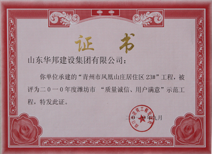 潍坊市“质量诚信、用户满意”示范工程