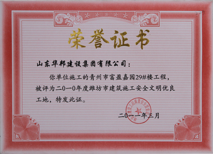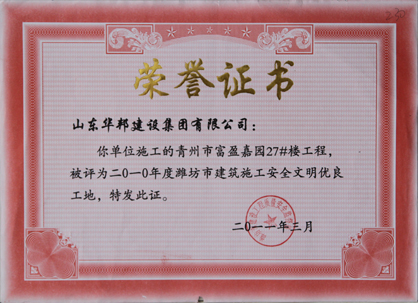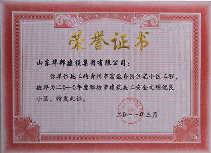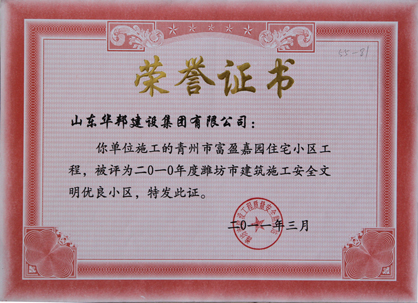 潍坊市建筑施工安全文明优良小区