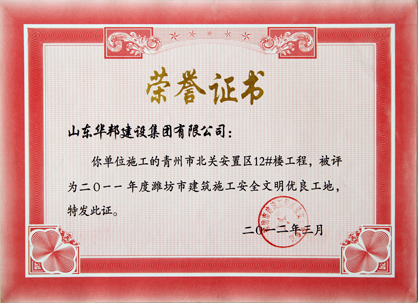 潍坊市建筑施工安全文明优良小区